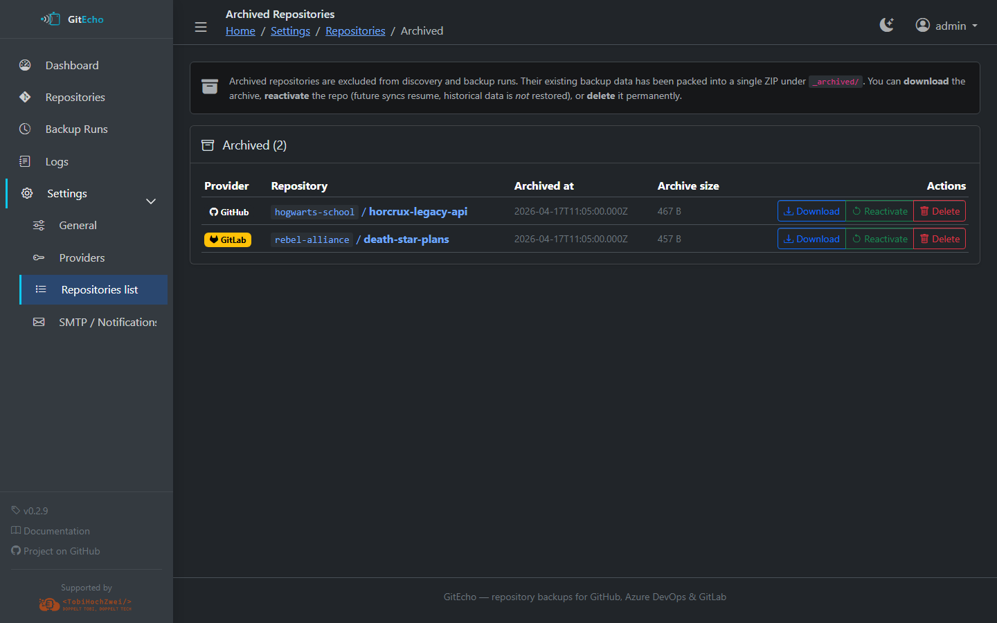 A database-first view of every repository GitEcho backs up: